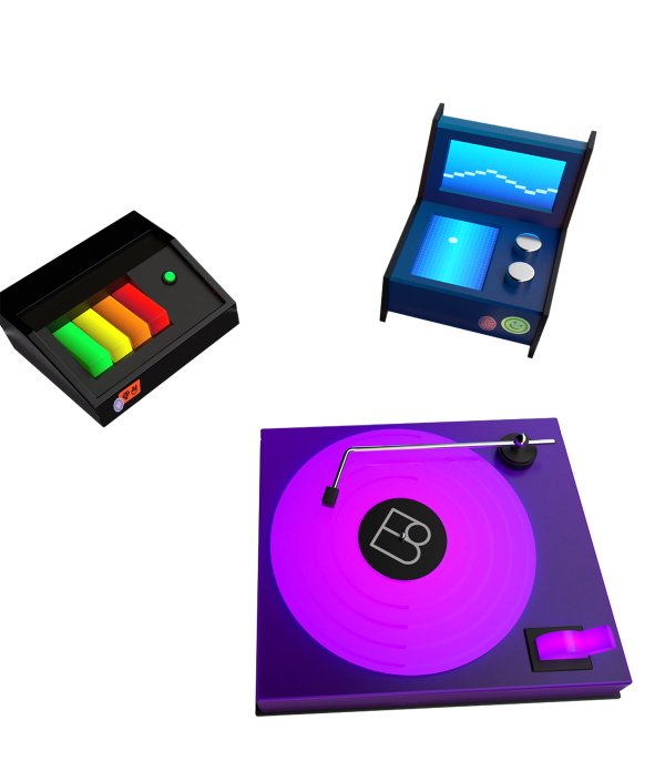 We landed on a collection of “instruments” that could be easily poked with fat fingers: a turntable, a drum machine, and an effects processor.