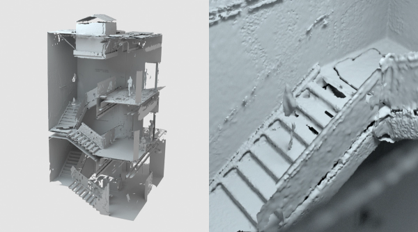 LIDAR scanning lets us capture environments with enough detail that we can animate a ball bouncing down the stairs and trust that the user will see the ball hit the exact step we intend.
