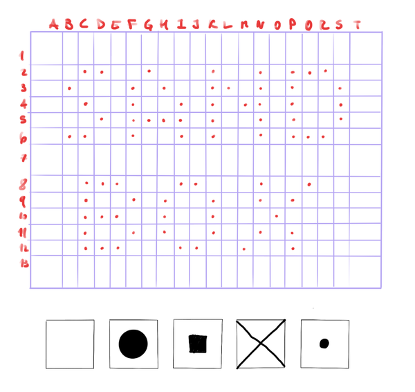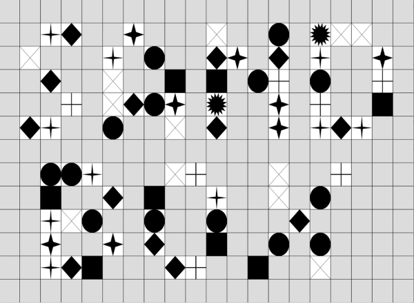 The goal of our sketching phase was to create a logo with the least amount of pixels so we could clearly map it out inside of a grid. We were curious to see what it would look like if we swapped square pixels with different shapes.