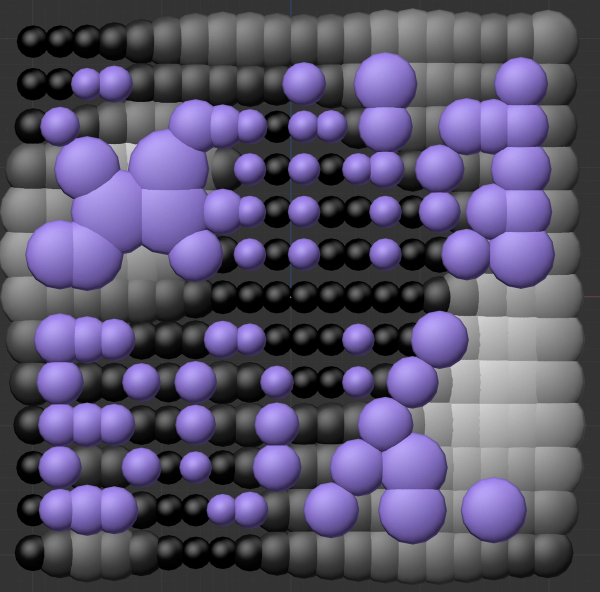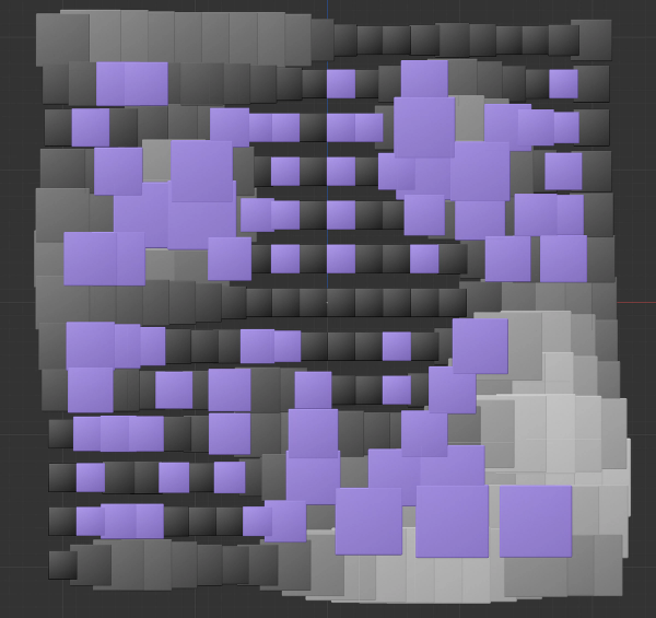 We continued the exploration phase by plugging the logo into different environments, like Cinema4D and p5.js. Now that we were working within a digital grid, the key was to find a way to create an interactive and ever-changing solution to the static results we were getting.