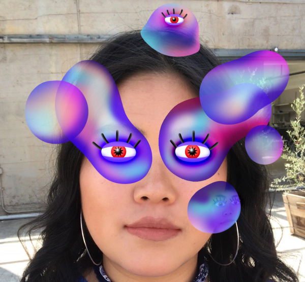 We conceived of a wearable interactive character made out of iridescent goo. The character becomes one with the user’s face, blinking when the user blinks and belching bubbles when the user opens their mouth.
