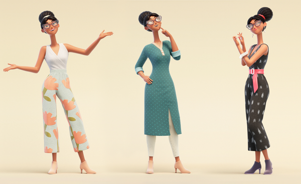 From beanie down to boots, every detail spoke to the cultural heritage and unique personalities of each character. We tested out every body type imaginable - boxy, rotund, pointy and wobbly. Whilst our finished characters are more restrained in style, bold and gestural acting brings out the Bollywood drama we all know and love.