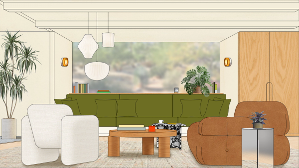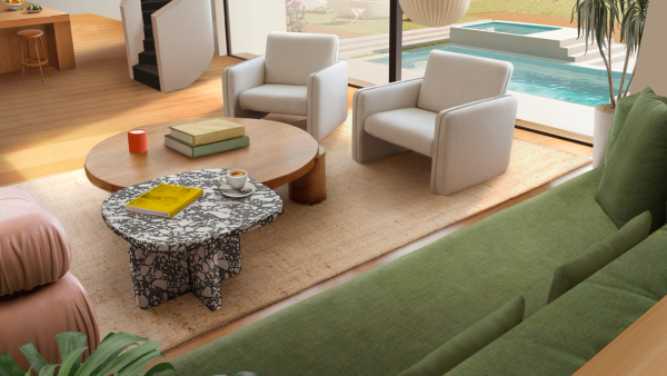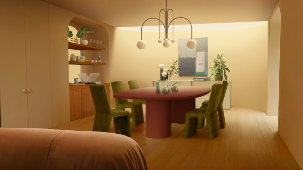 To complete the visuals for these spots, we created a photorealistic environment that served as the set and background of each story. All six spots were set in the characters’ SoCal, mid-century home. We designed the whole house, and placed cameras in different places for each film. This was a great exercise in achieving a cinematic look entirely in CG, a huge victory for us in terms of technical prowess.