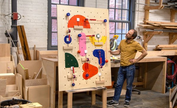 We wanted to create a piece that bridged the divide between the physical and digital worlds. The result is our ever-evolving Bucky Wall that’s playful and fun with a simple, lo-fi, D.I.Y. vibe that channels more than a little of that Buckminster Fuller magic.