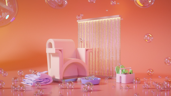 For the live-action portion of this campaign, we wanted the sets to feel otherworldly and infuse them with a euphoric and utopic airiness. This meant creating a number of bespoke set pieces from scratch, like a giant, plush bean bag chair.