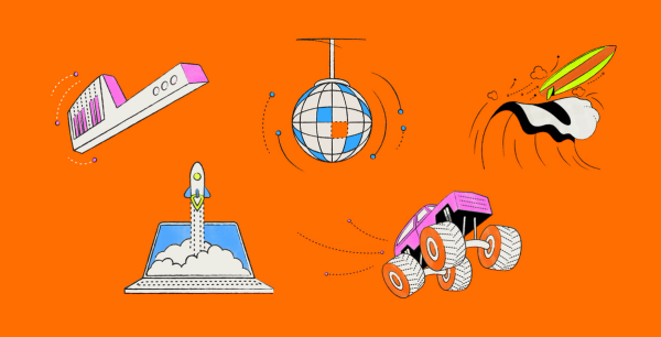 Illustration became a primary driver of the campaign, allowing us to connect punchy messaging to clever visual metaphors. Taking inspiration from the style of technical drawings and airline safety brochures, we cast this sensibility through a more vibrant and playful lens. The result is a colorful world of disco balls, rocket ships, monster trucks, and everything in between — all brought to life in a hero film that explores the journey to enterprise AI, as expertly guided by Cloudera.