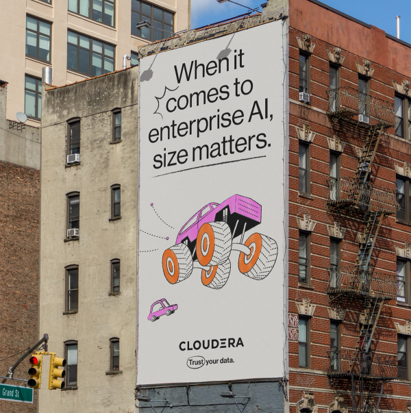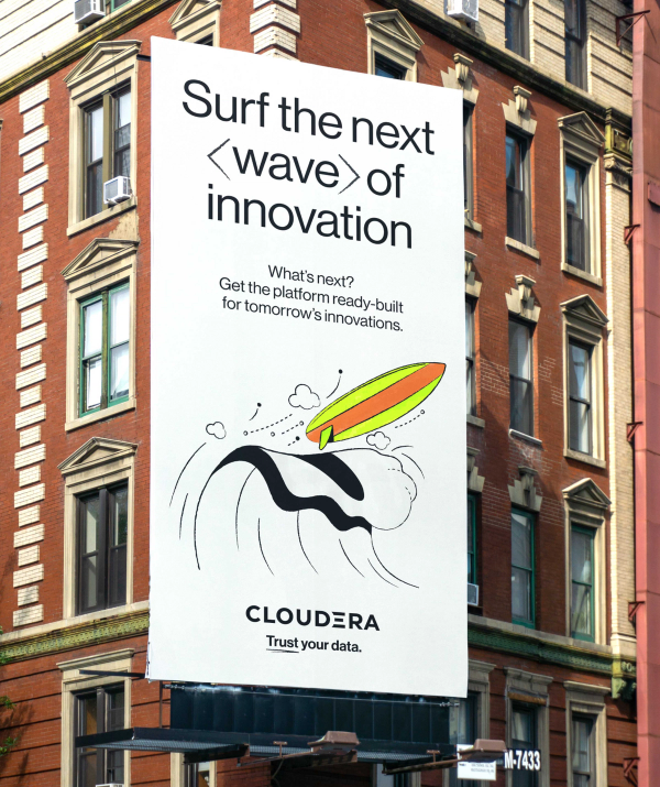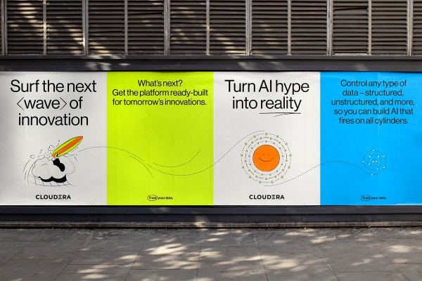 We worked closely with Cloudera’s team to establish a campaign platform and messaging framework that would resonate with decision-makers. Our shared goal was to speak to trust in a bold and engaging way, cutting through the AI-marketing noise. We developed a messaging platform that balanced credible authority and quippy colloquialisms with a visual system using vibrant color and eclectic illustrations. The result was a dynamic approach that emphatically positions Cloudera in the marketplace, while shaking up the idea of what a data company “should” look and sound like.