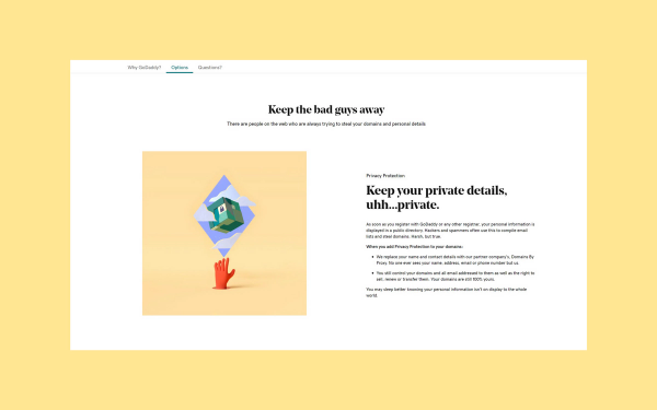 The illustrations serve to visually translate the products that GoDaddy offers to help build, grow, and manage your domain.