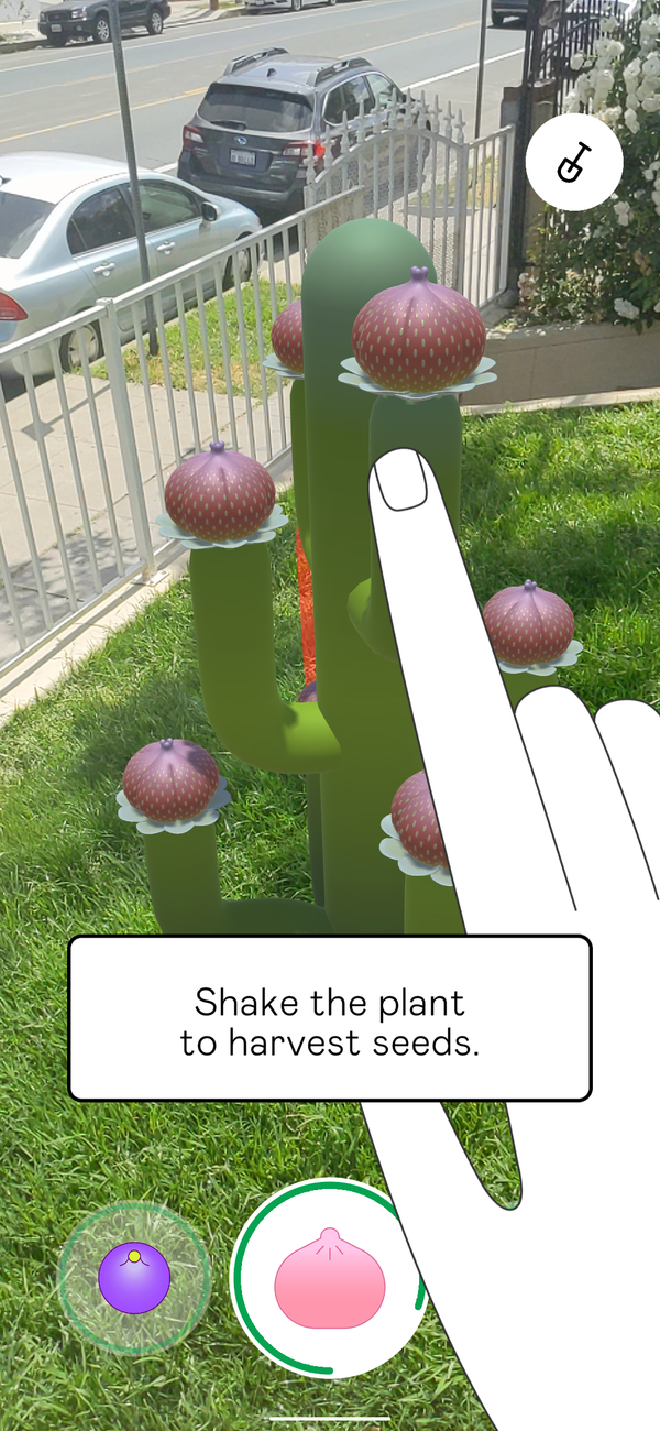 Pocket Garden has two phases: planting seeds and watering the resulting plants. Planting seeds makes use of localization for a persistent, world space position.