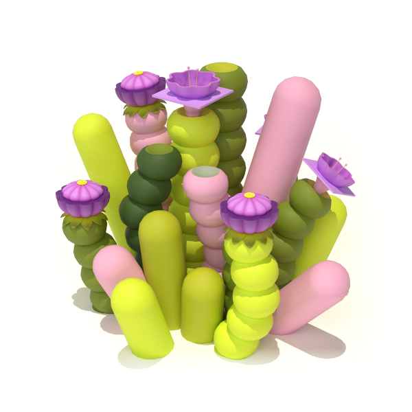 We created a whimsical set of plants bristling with colorful flowers and fruits. The design style allowed us to make subtle variations to each instance, giving gardens a more organic look.
