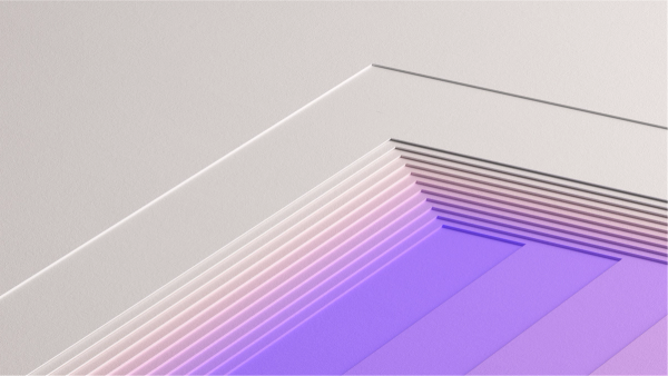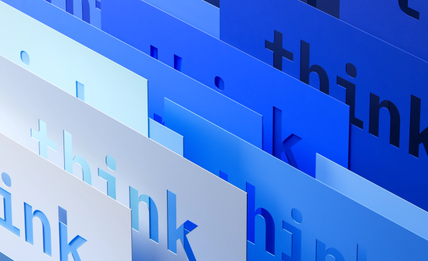 The IBM Think visual language plays with light, dimension, and perspective. We explored several material studies, experimenting with micro and macro examinations of different surfaces and mediums. Our approach took inspiration from paper craft, architecture, and other physical mediums as ways to ground these deconstructed letterforms. Light and color played a large role in how we activated these forms in bold and graphic ways.