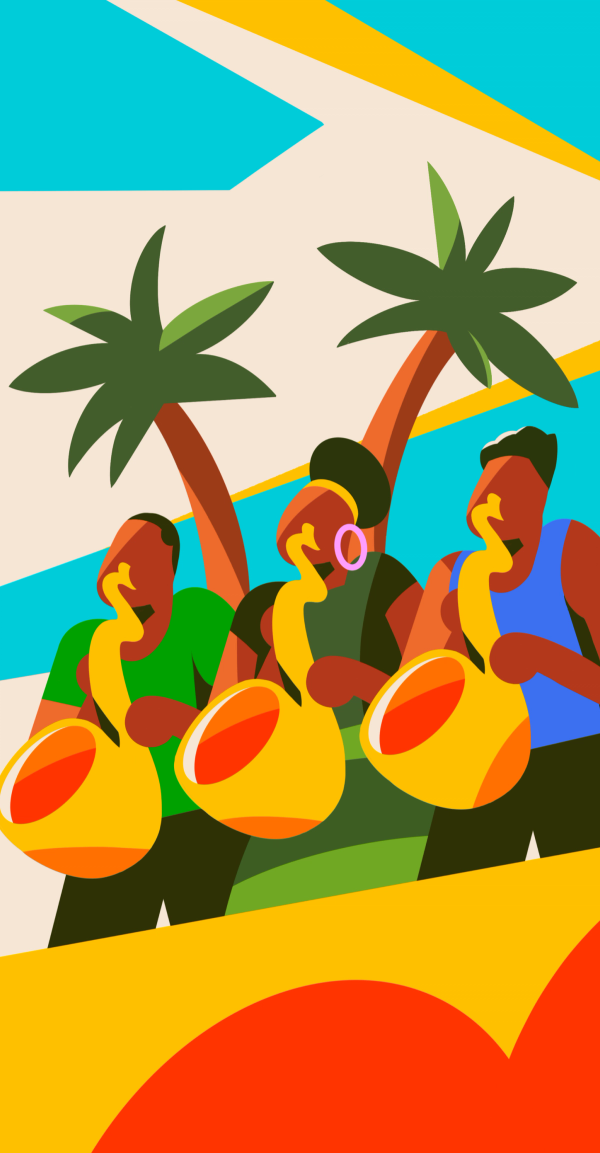 Some of the prominent visual elements present in our research were broken chains and cuffed arms. We wove them into our own design in order to honor their iconography and their historical value. We also featured an array of bright colors from the flags of the countries formerly belonging to the Dutch Kingdom, and therefore sharing its history of slavery.