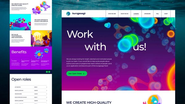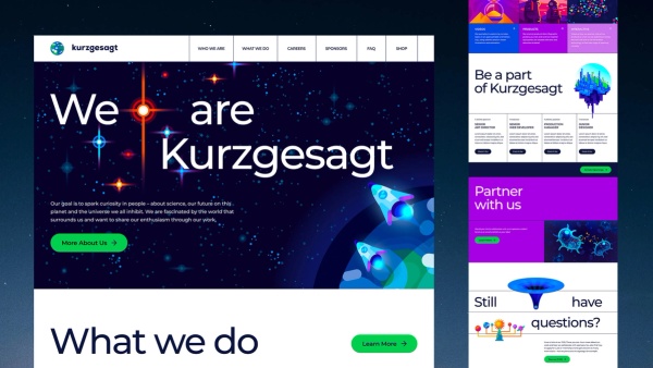 We teamed up with the folks at Kurzgesagt to redesign their website to better spark curiosity for science, broadcast their brand, and highlight their full product offering. In a nutshell, we needed to showcase how they’ve grown beyond a YouTube channel to become a veritable buffet of fascinating science facts for those hungry for knowledge. For the site’s look and feel, we drew inspiration from scientific materials — academic textbooks, annotated diagrams, etc. — to evoke a learning environment that preserves Kurzgesagt’s playful vibe.