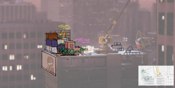 As the story progressed, we needed a way to up the ante and escalate the zombie threat. We thought it would be funny if they turned big, but, you know, still mini. Also they should shoot fire.