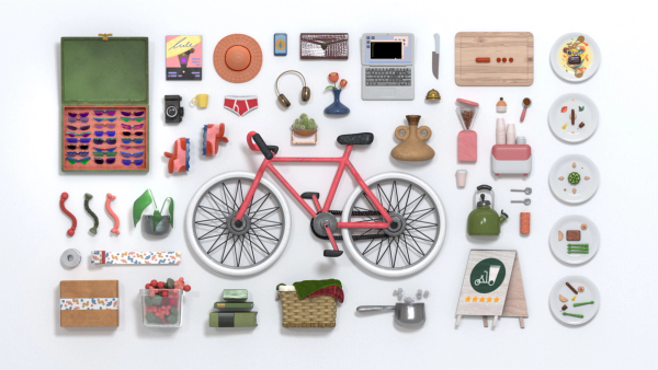 For the most part, every object has just one shader. This creates the charm and tactility of a physical material, but without trying to fool anyone. This is CG. Embrace it, baby.