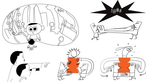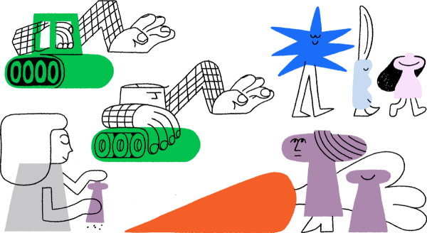 For example, when designing a basketball coach, we created a character who is not just tall and agile, but whose torso is a backboard and hoop. These fun surrealist hybrids communicated our message while being stylistically memorable.