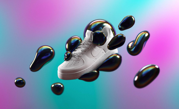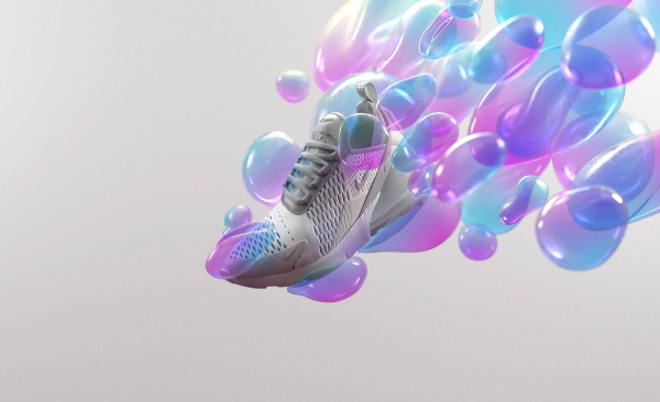 We unlocked the gradient tool and blasted our screens with ramped colours. Then we bubbled, distorted, deconstructed, ripped, pulled, peeled, and revealed the shoes in their pure white-on-white whiteness.