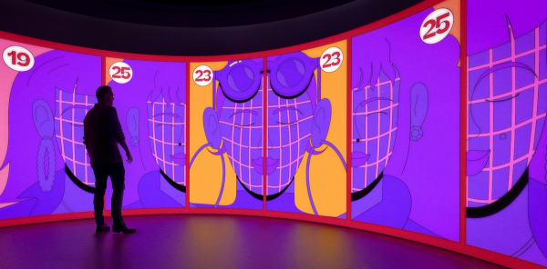 Designing and animating for a 360 format presented a lot of fun challenges, especially when the canvas is a 64’ long, 8’ tall seamless loop with an image provided by five overlapping 4K projectors. Piece of cake. A very looong, moving piece of cake.