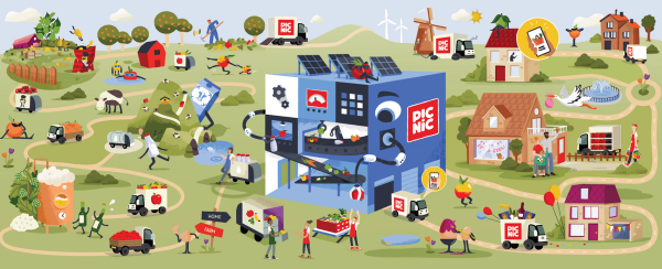 Picnic, one of Europe’s leading online supermarkets and the veritable ‘Supermarket on Wheels,’ wanted to revitalize their brand and identity. So, we cooked up a collection of illustrated goodies that included a unique illustration language owned by the brand, a database of Foodie Friends and other bespoke characters, a magazine, and an app. Oh, and a big mural for the Dutch King’s viewing pleasure as he unveiled the brand’s new food centre.