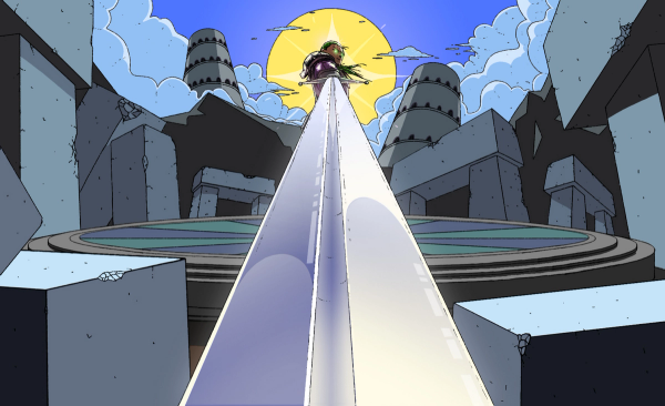 The concept was to begin with a celestial ‘Big Bang’ and transition, like our slimey and furry forefathers, from out of the water into a primitive jungle before eventually achieving civilization. All along the way, we follow classic Playstation heroes (shoutout to KING!) as they engage in a madhouse race from medieval times through a modern city and into a sci-fi future — all environments inspired by these classic games.