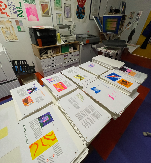 Riso printing matches the ink-on-paper aesthetic that accompanies traditional screen printing with the efficiency of Xerox. Secret Riso Club is an anti-capitalist design studio that focuses on intersectional social justice, design, and community building. Based in Brooklyn, NY, SRC was created in 2017 by Chilean immigrant Gonzalo Guerrero (he/him).