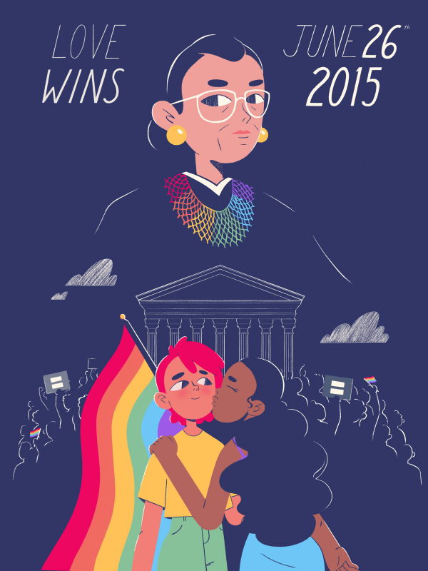 Before Ruth Bader Ginsburg, men and women had very different rights in the good ol’ USA. So did gay people. And people of color. RBG was a lifelong champion of equality and pushed America to live up to its ideals for a more equal society. BUCK artists illustrated a series of commemorative portraits highlighting her impact on our country and its history.