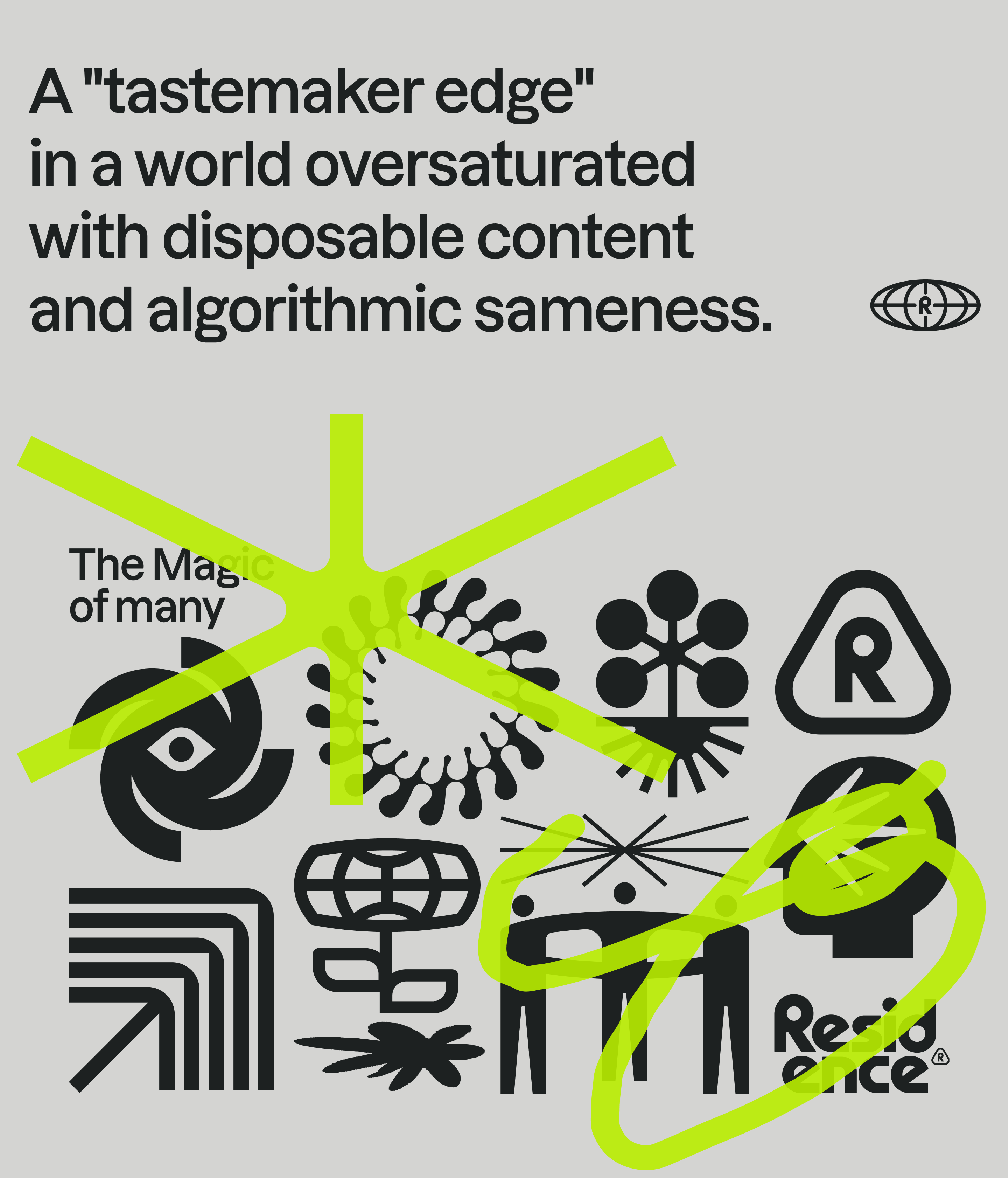 We also needed to articulate what sets Residence apart from traditional holding companies and express its "tastemaker edge" in a world oversaturated with disposable content and algorithmic sameness.