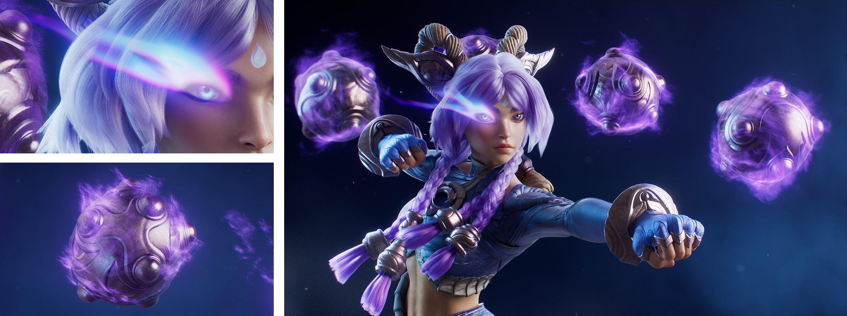 Texture played a key role in shaping the identity. It needed to feel iconic, capturing the materiality of Zaahen’s glaive, reimagined through a crystal style render.