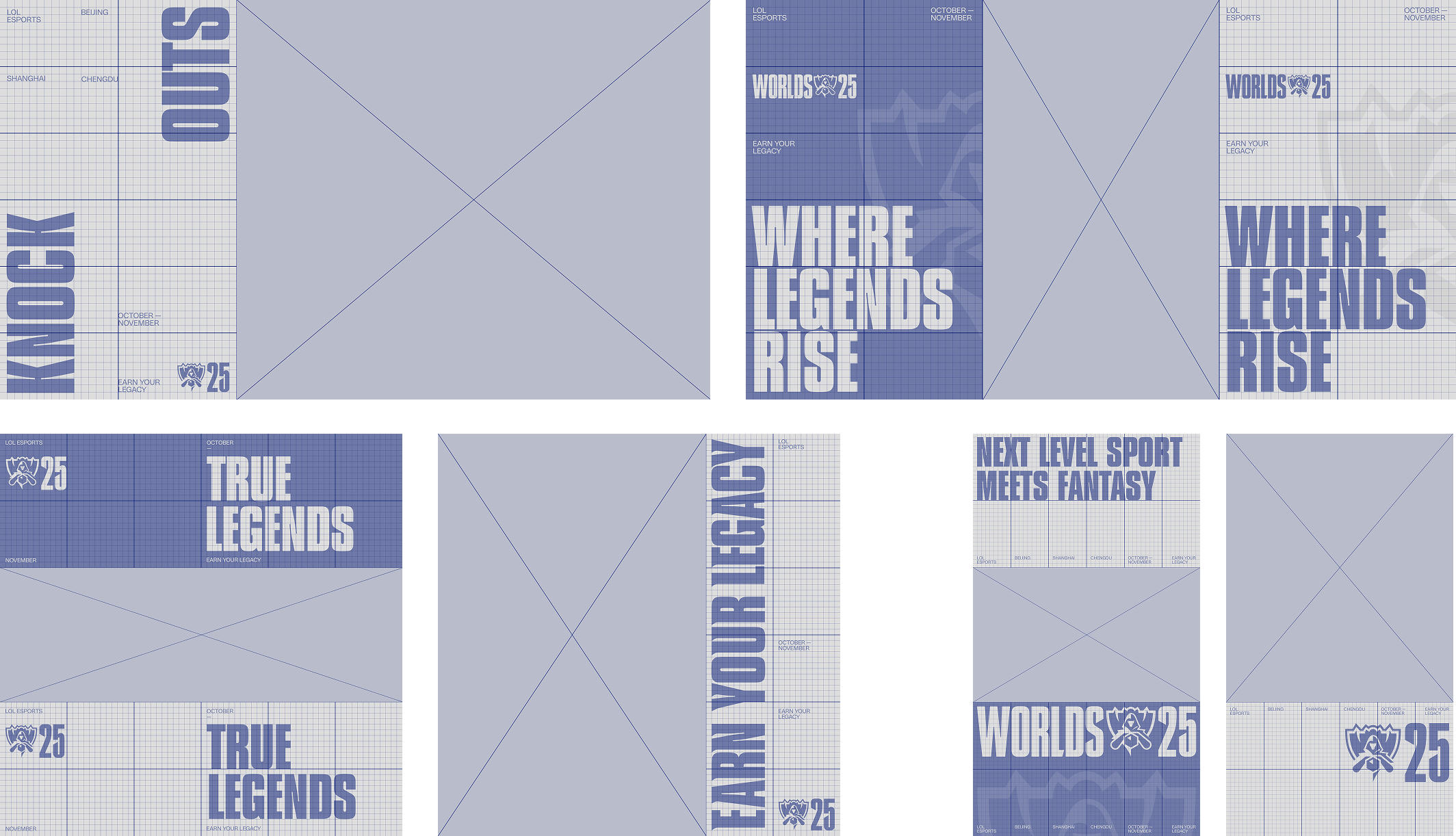 We crafted a comprehensive toolkit and guidelines, helping Riot and their partners to extend the system across every touchpoint. The result: a framework that remains fresh year after year, transforming the World Championship from a yearly refresh into a lasting identity.