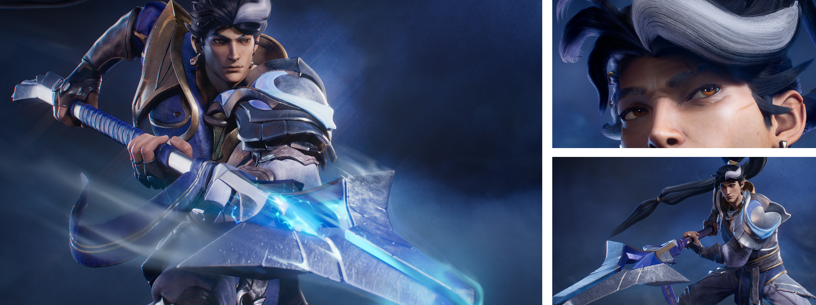 Each year, seasonal elements build on that foundation to inject fresh energy. For 2025, we developed the full seasonal expression and its accompanying guidelines, drawing on the Summoner and Xin Zhao’s glaive as both graphic motifs and sources of macro textures for the key visuals.