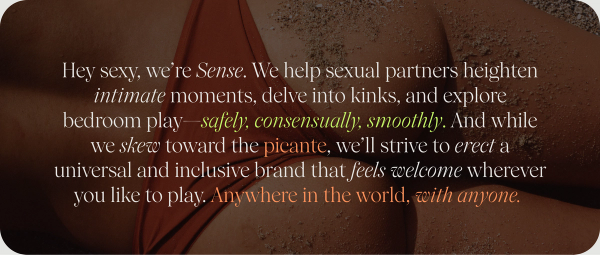 A full 360 brand development and launch for Sense, a sexual wellness startup unapologetically embracing the world of play. From that first electric brush of skin to the steamy ravishings that follow, with Sense, safety isn't an afterthought or an intrusion — but a seamless, organic part of our journey. With a sultry brand voice and bold visual identity (playfully dubbed "Body Language") to tantalizing product packaging, BUCK, dare we say, touched every inch of this brand.