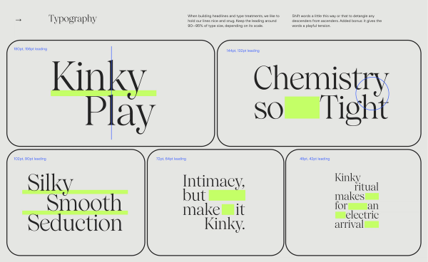 Over the next two years, we got very personal, developing the Venezuelan brand from the ground up for launch in North America with a comprehensive brand strategy and tone of voice focusing on the idea of "foreplay." We aimed to strike the right balance between sexy vs. serious, creating a playful intimacy that encourages customers to explore their desires without judgment or fear.