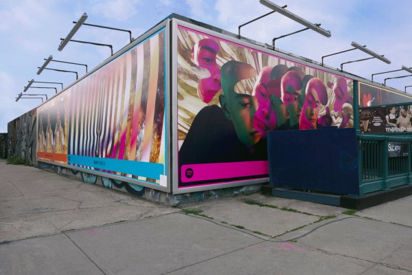 The Spotify summer campaign also had site-specific designs in high-profile locations such as NYC’s Time Square and Penn Plaza, and Miami. More art appeared every-which-way as wheat-pasted posters, digital bus stops, and on animated screens across the globe.