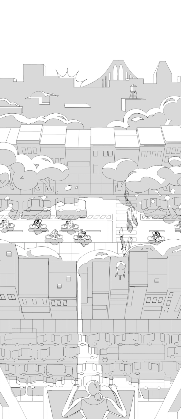 We separated our story into four different threads following characters and the common problems they face in the city. After establishing each scenario, we then see problems become solutions, all brought together by our loose visual interpretation of the data.
