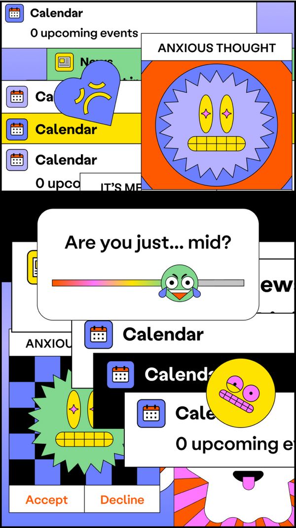 We also took over the website landing page, which featured a series of illustrated gifs and type assets that accompanied the brand’s messaging. The art jumps off the page like cascading, stressful thoughts, and guides users along an endless scroll of educational resources.