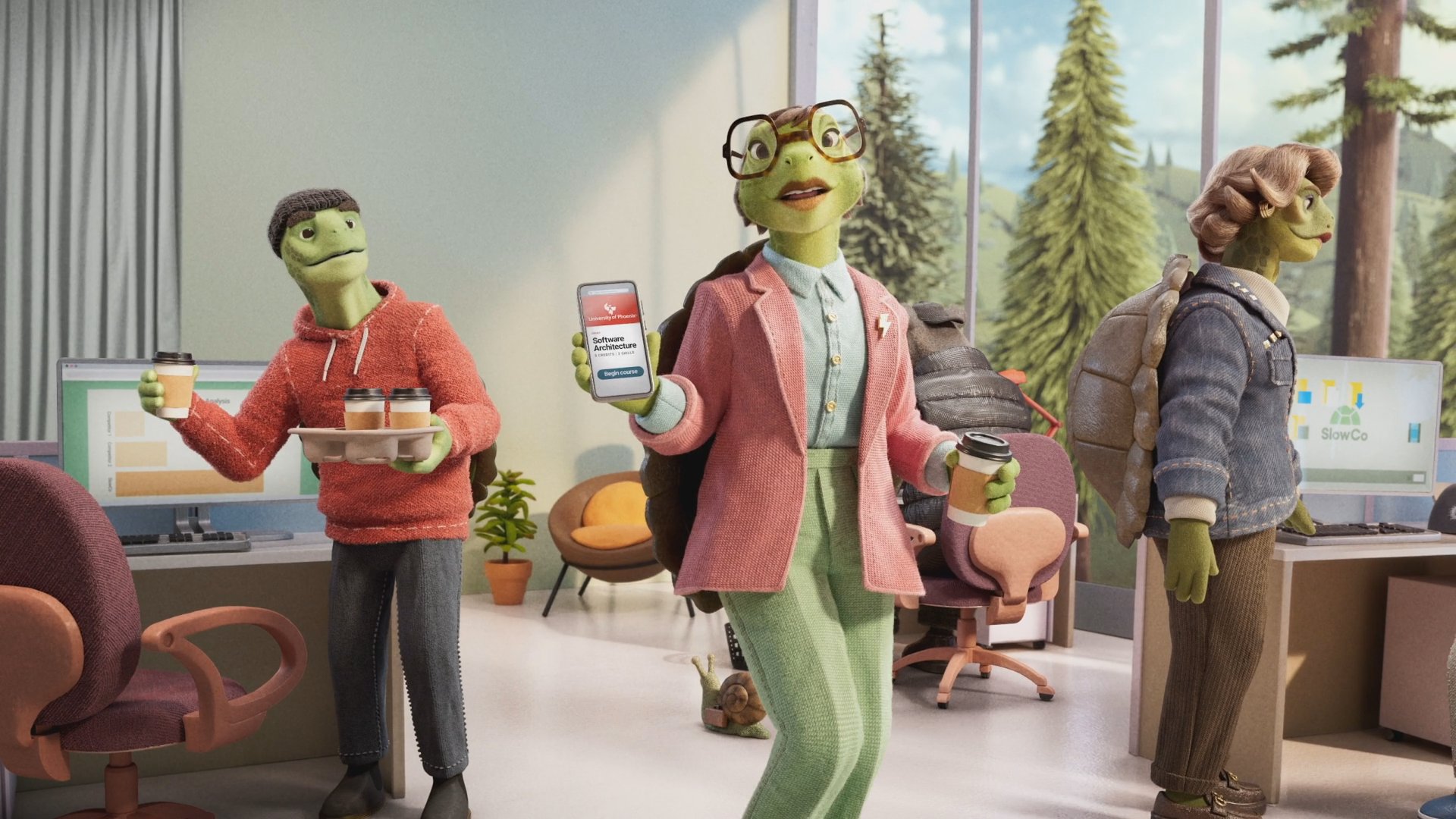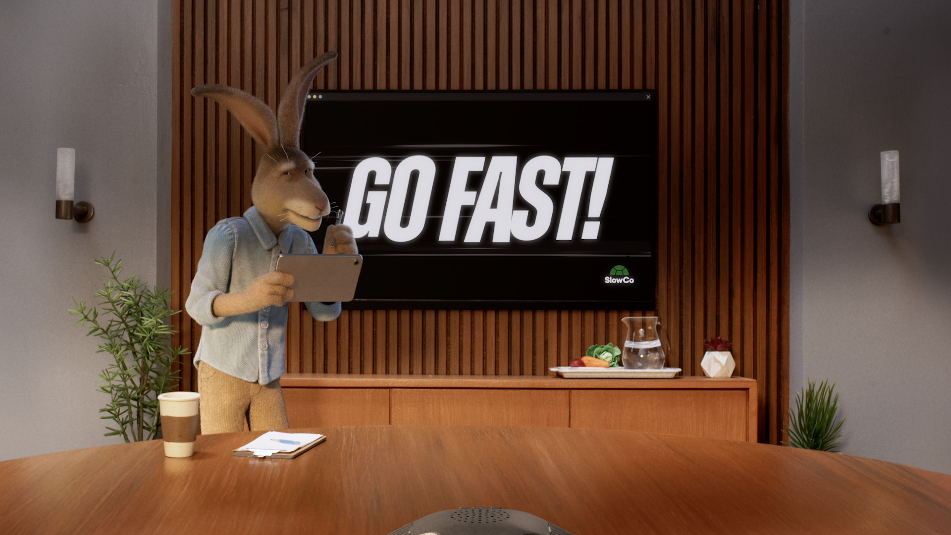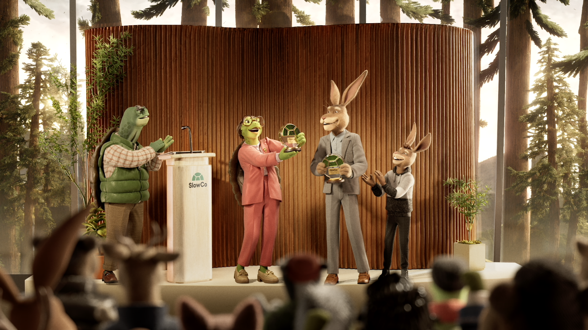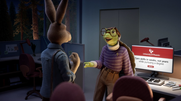 For the anthem film, we fast-forward 100 years from the fateful race, creating a subtly dystopian setting where Harold the hare has a breakthrough business idea but no clear path forward. Teaming up with a thoughtful tortoise, the two enroll in University of Phoenix courses to learn, adapt, and prove that sometimes speed is the winning strategy.