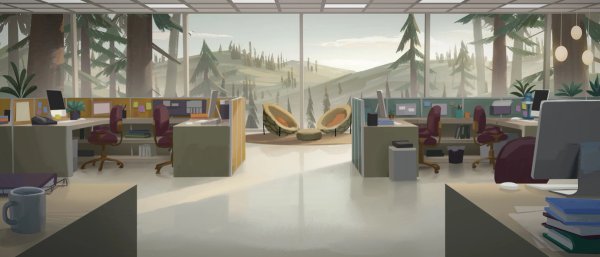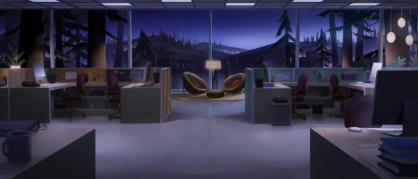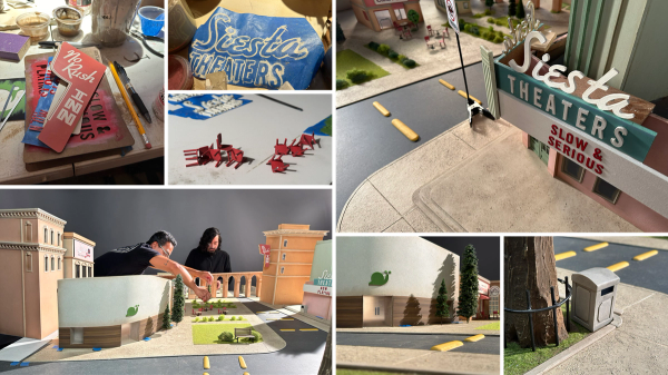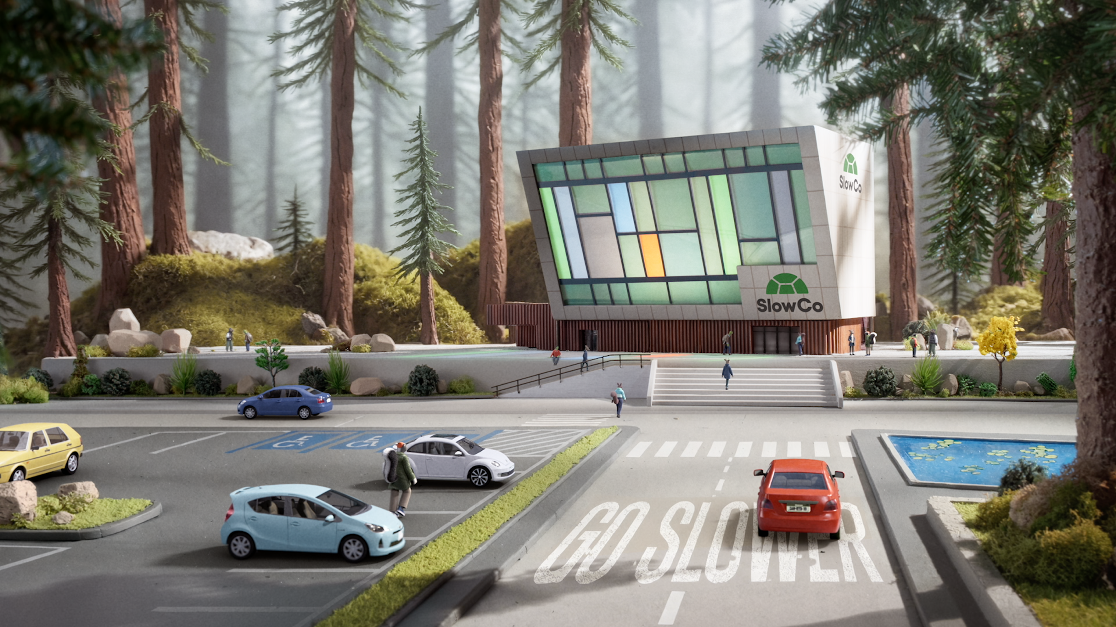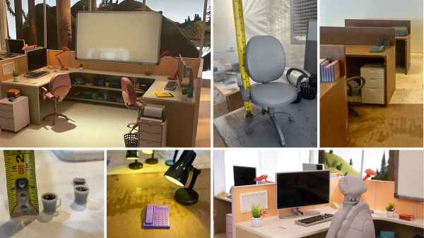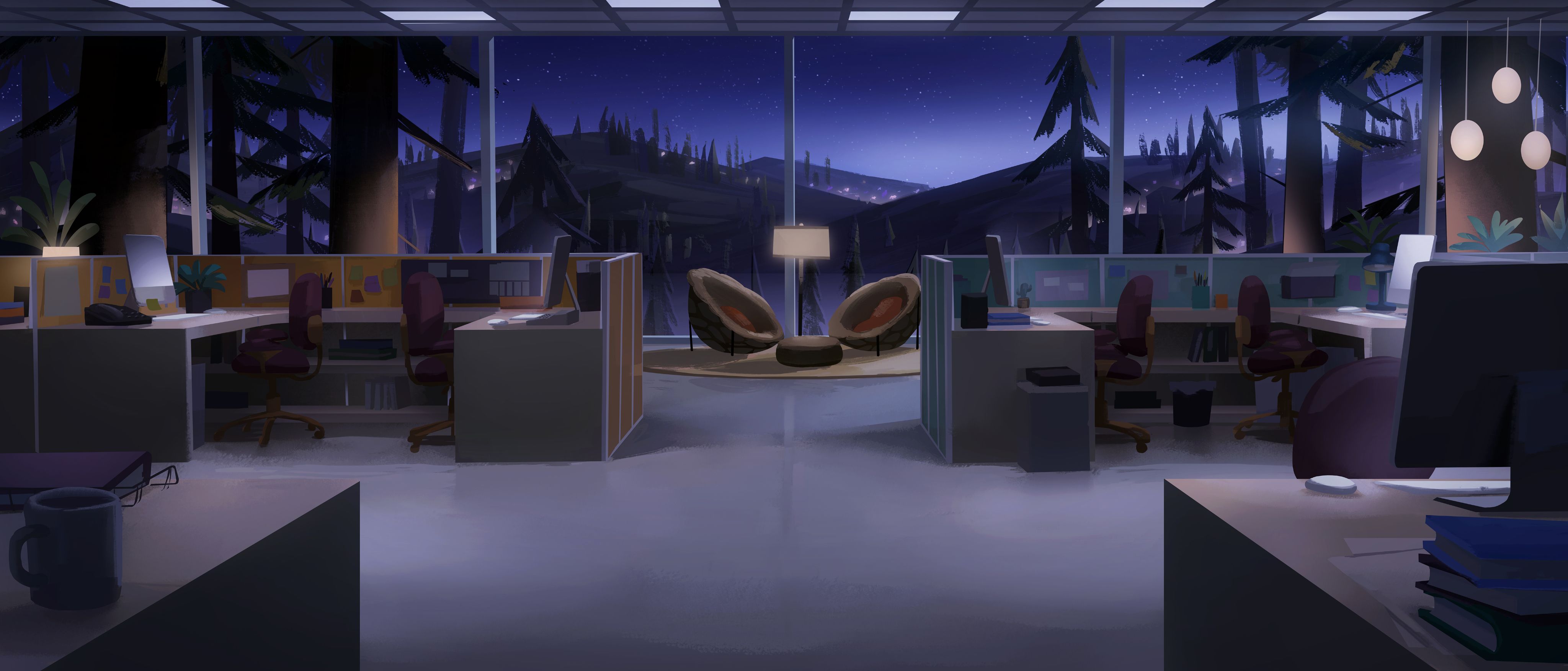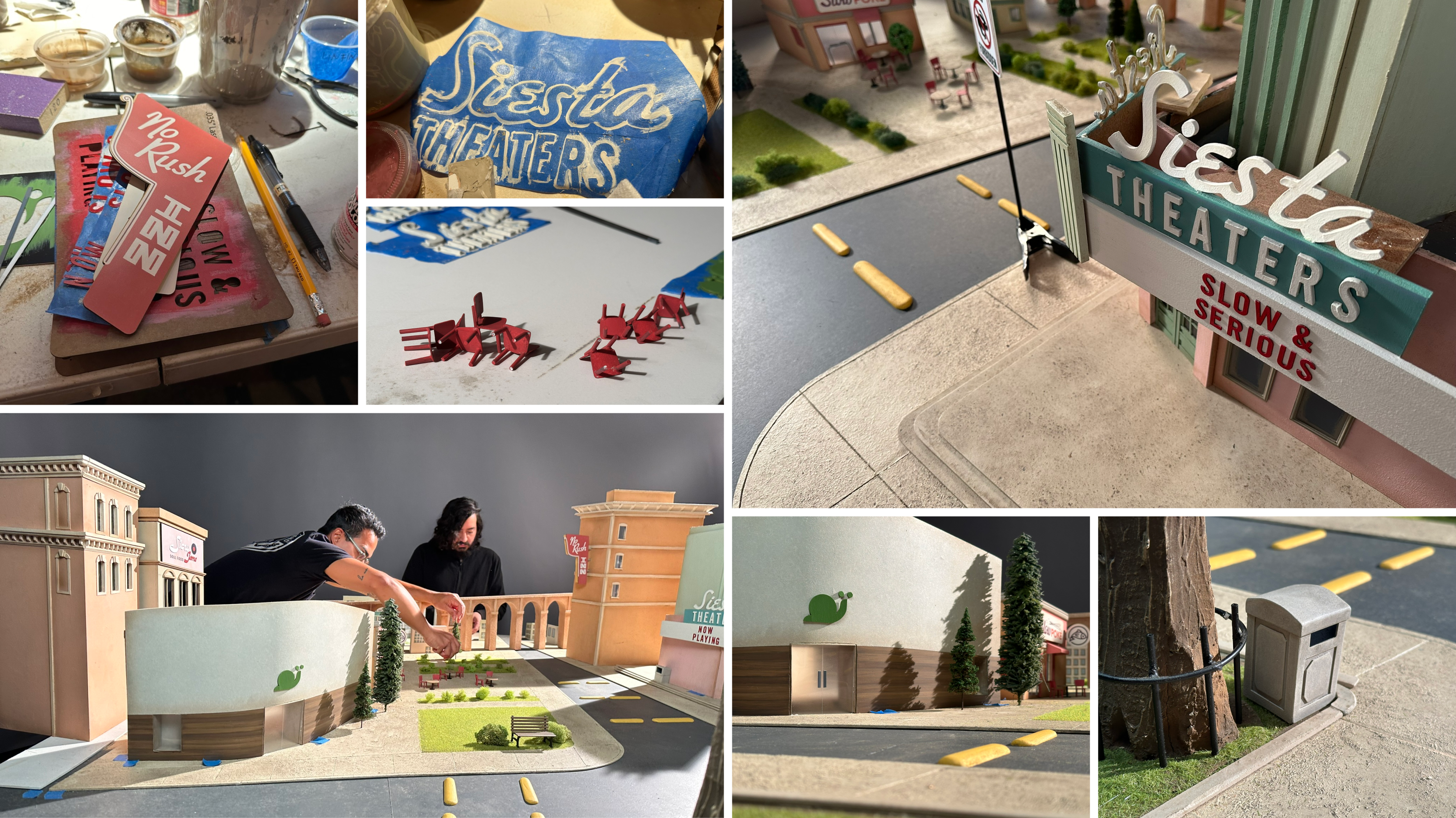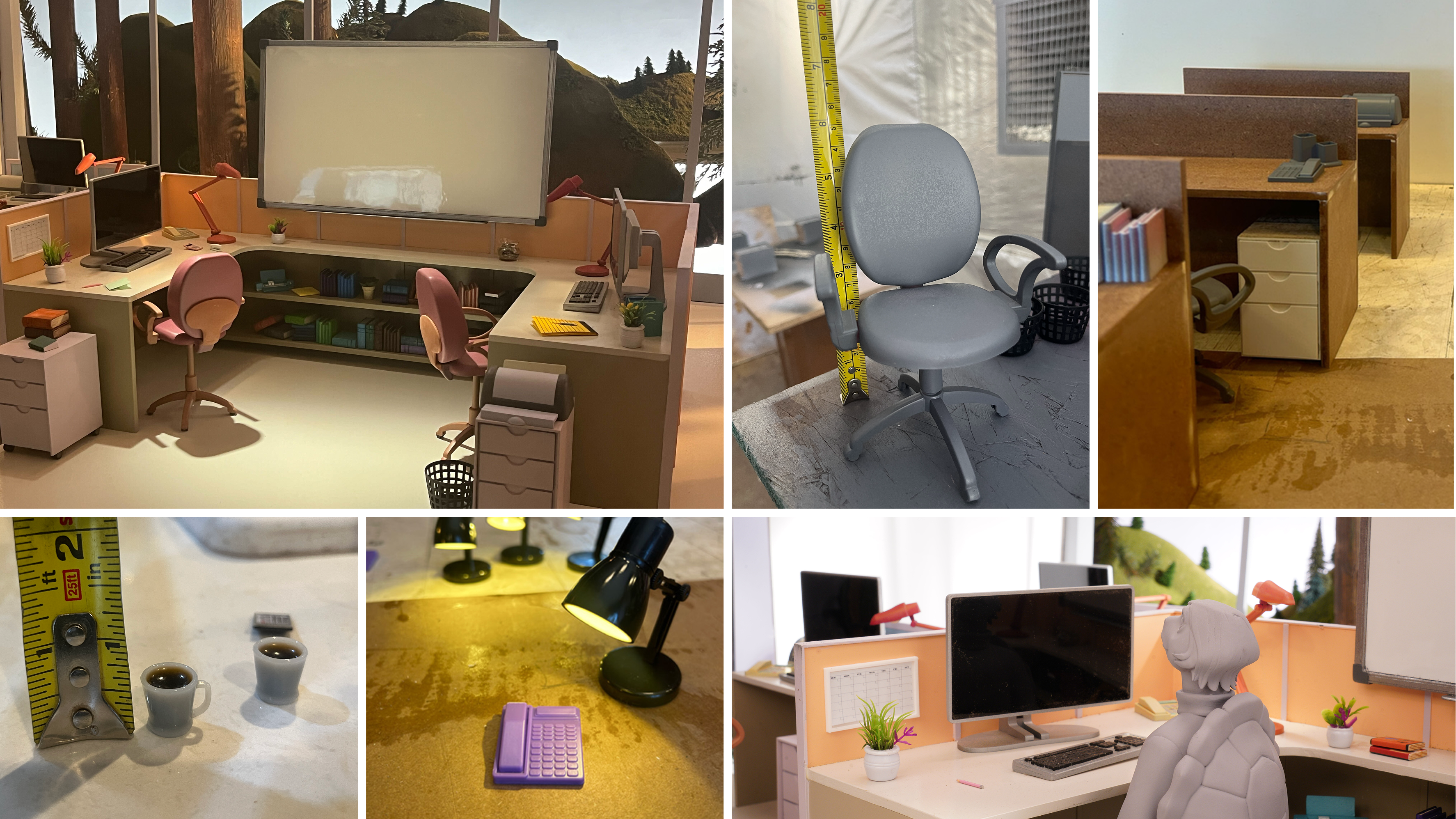 We got our hands dirty for this one, creating practical miniature sets for our fabled characters. We built a physical model of their small Pacific Northwest-inspired town, along with a miniature office with desk chairs, computers, and various props to solidify our characters in this world.