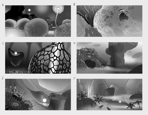 For both displays, we worked in some surreal assets like floating orbs and glowing mushrooms to provide a bit of excitement without overwhelming the natural environment.