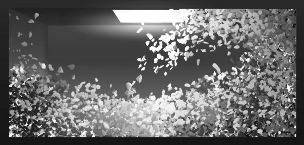 We were working with two screens: one large panoramic display in the main space and a shorter one in an adjacent concrete room.