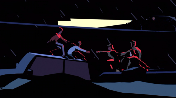 We developed these loose concept art sketches to give us the feeling of environments and moments before designing them in our cutout style.