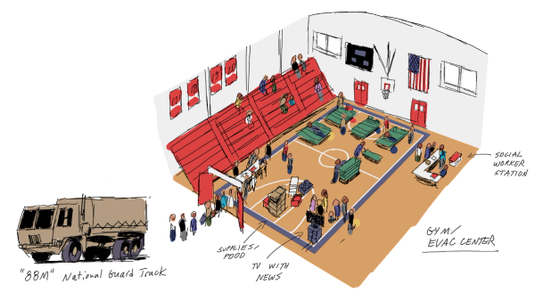 Everett Downing Jr. had the main points of the story blocked out and a few visual references for a cut paper look.