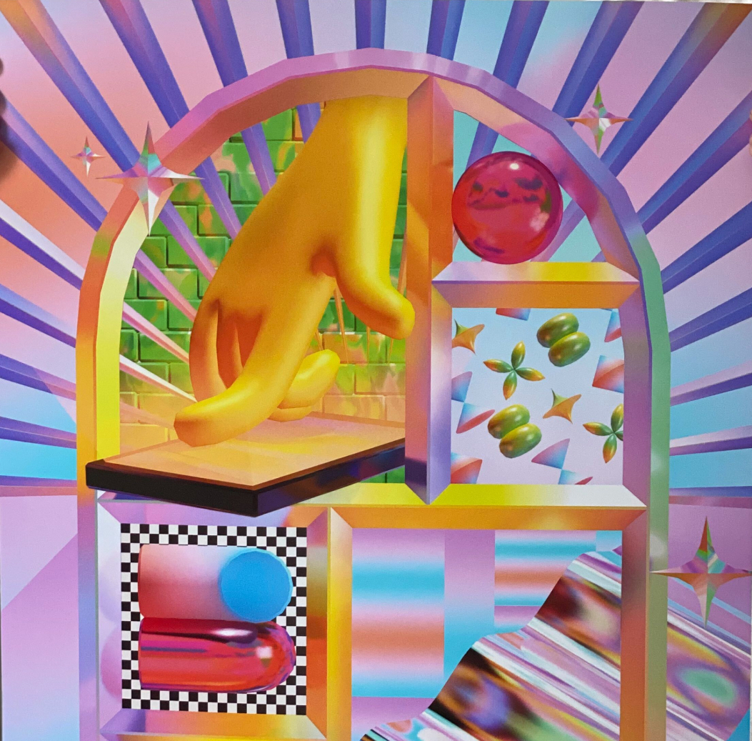 Once an object is detected, a colorful wiggle spins around it and emits a tone, while the circle at the top of the screen pulses with a corresponding color. As the user adds more objects, new colors emanate from the object and we hear a different tone, creating a prismatic, atmospheric soundscape based sheerly on the number of objects the user scans.