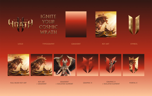 A flexible gradient palette allows for various moods — from dramatic and heroic to ominous and sinister — giving every touchpoint of the game’s marketing a look and feel that’s versatile yet distinctly Asgard’s Wrath.