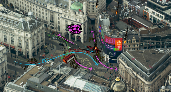 Early on, there were talks of a stylized look, or even building practical miniature sets, but it was important for us that this felt like you were watching a real world (albeit bite-sized) apocalypse happen right before your eyes. With this idea in mind we arrived at the decision to use a mix of cg and live action photography treated with a tilt shift effect.