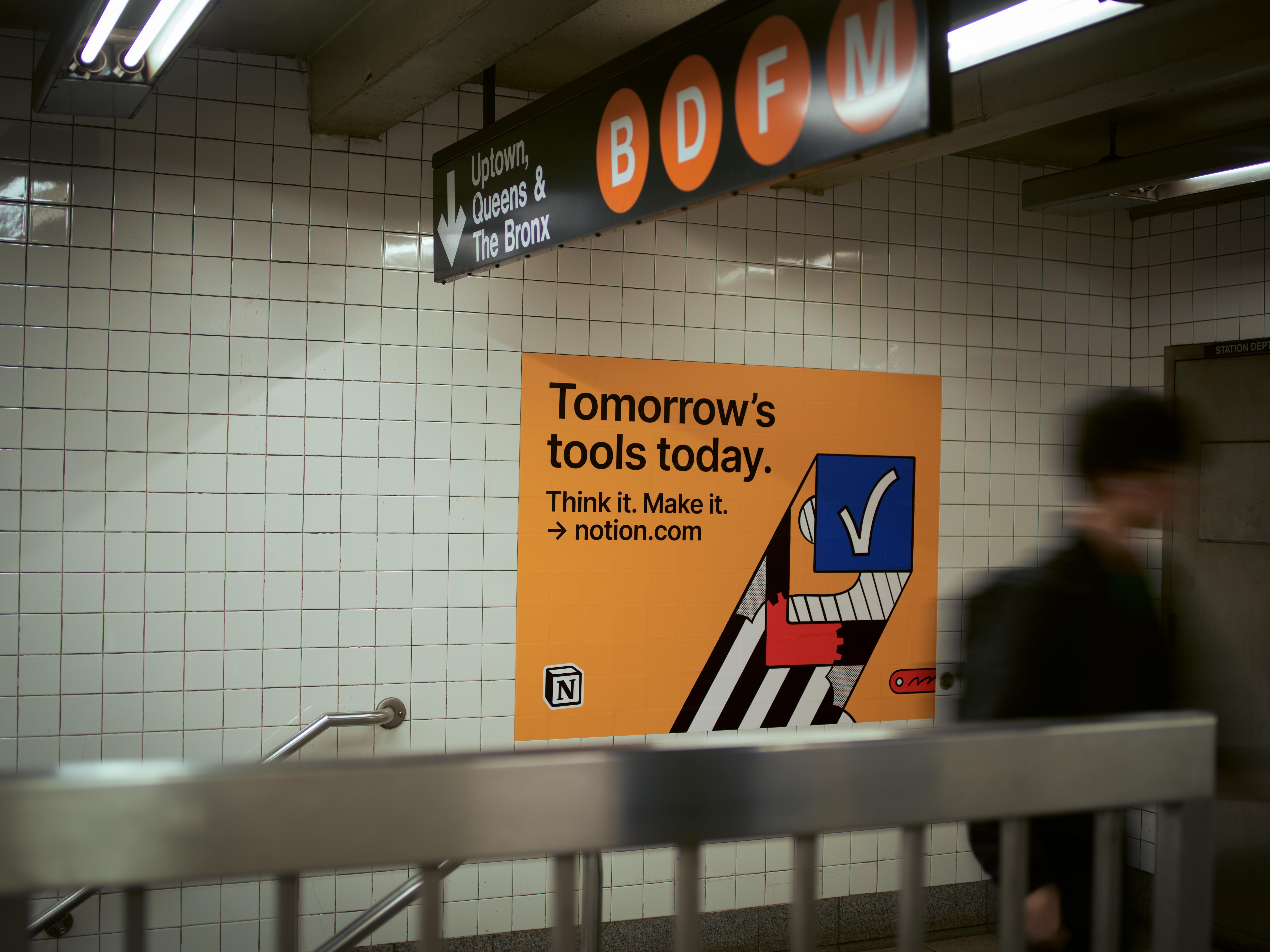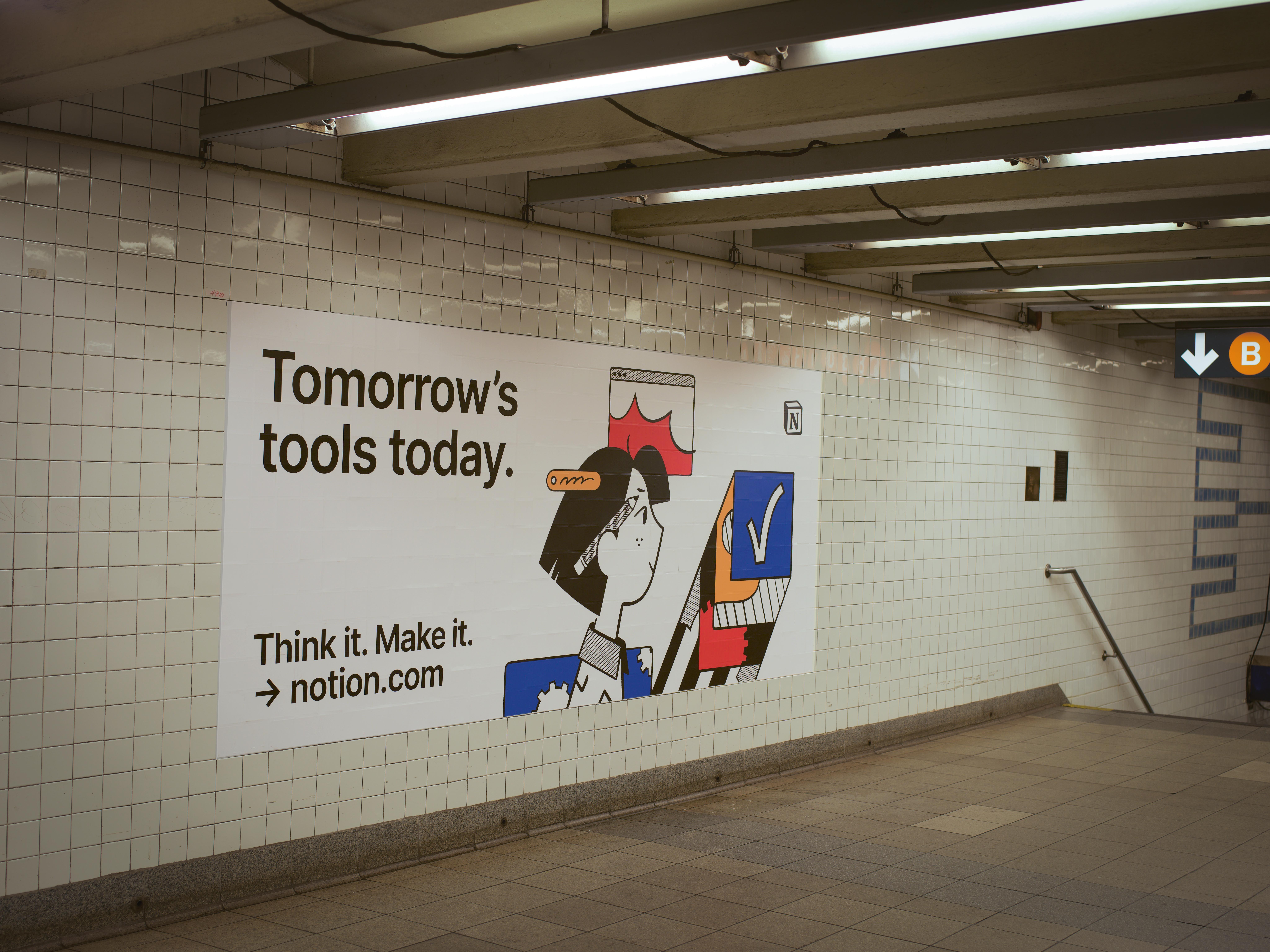“Think it. Make it.” as the new brand tagline for Notion, and a suite of bespoke headlines for OOH placements that highlighted Notion’s new AI features without being loud or on-the-nose about them...