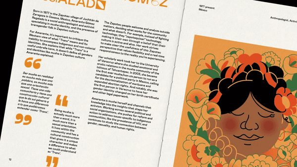 For this first edition, we strove for biographies that would provide enough information to function as a primer, inviting audiences to continue learning on their own. Where possible we included our heroes’ writings or quotes in their mother tongue alongside English translations to ensure we populated the zine with their real voices. Beyond pure portraiture, our designs were inspired by and incorporate personal details that add an additional layer of storytelling.