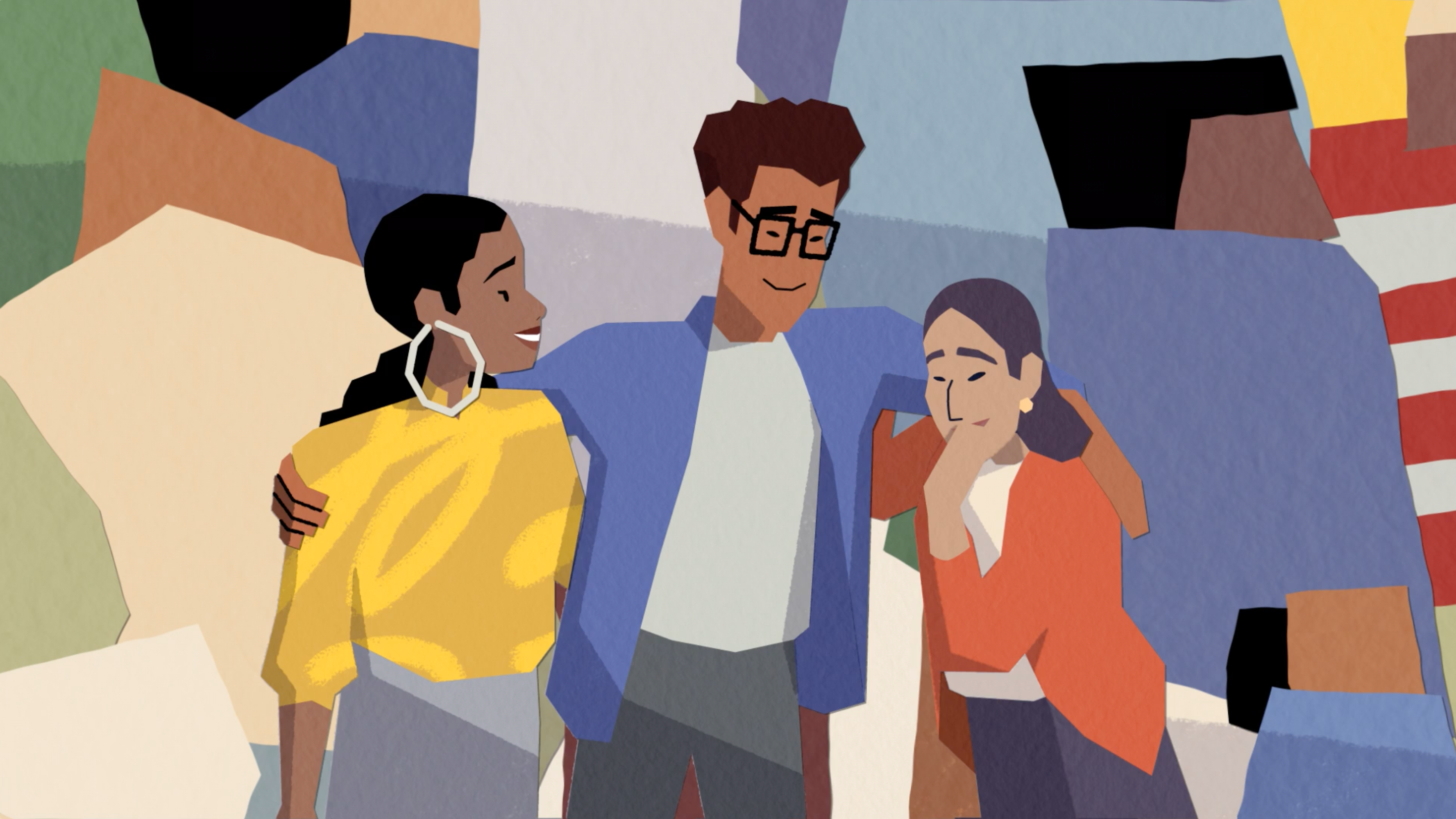 Using a painterly style to capture a feeling of personal expression, we go from tentative muted tones to a more lively and rich palette as the piece builds to echo the story progression.